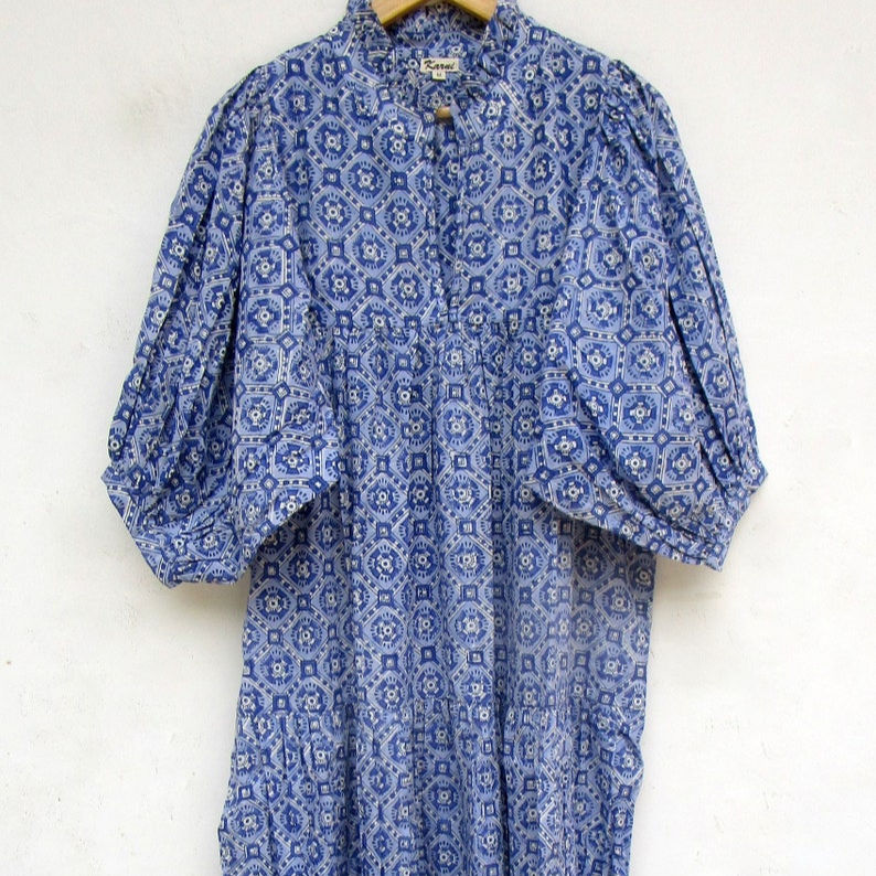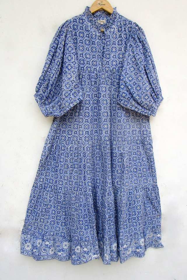 Handmade Women's Cotton Kaftan by Farida Kahlo Long Indian Dress Gown Button Decoration Natural Waistline Cover Night Wear Item