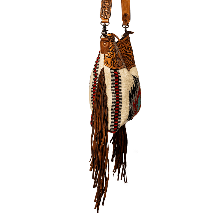 Handmade Women's Genuine Leather Crossbody Bag Saddle Blanket Tooled Bohemian Fringes Adjustable Strap Lightweight Vintage