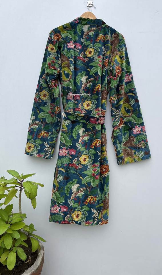 Robe longue réversible en velours pour femmes, faite à la main, veste d'hiver taille libre, manches en coton, imprimé d'automne, imperméable et respirant
