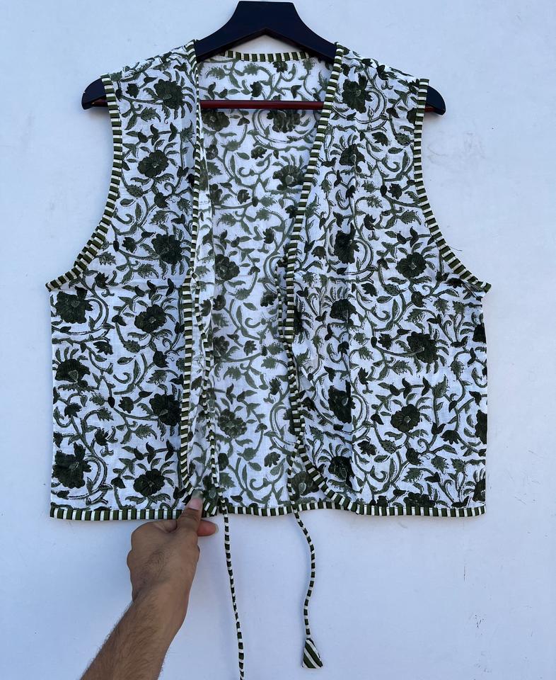 Gilet à col en V ouvert sur le devant pour femmes, fait à la main, imprimé floral, tissu 100% coton, gilet court