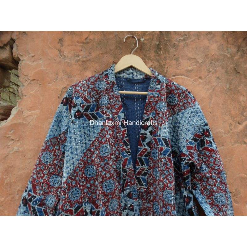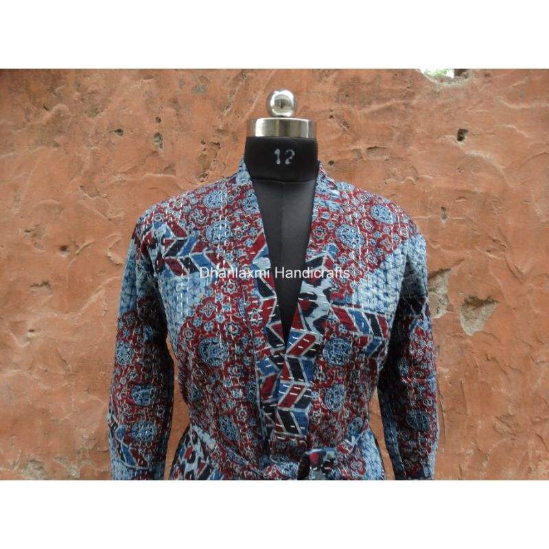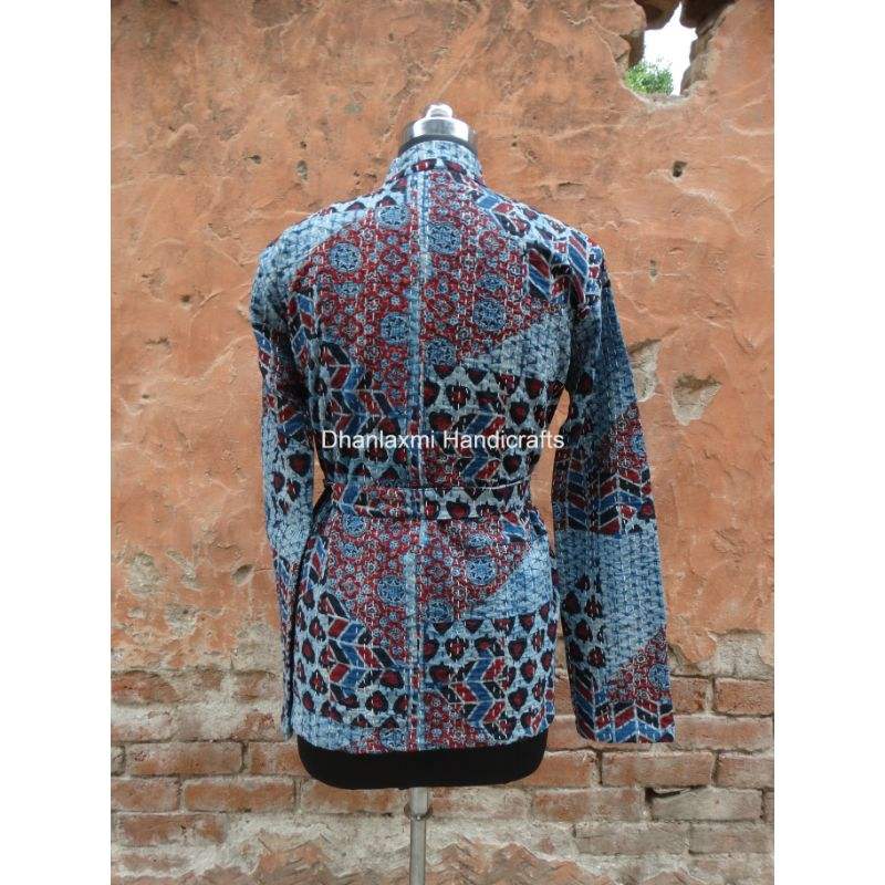 Manteau d'hiver ethnique court fait à la main pour femmes multicolore Kantha tissé peignoir Ajrakh Patch travail matelassé broderie coton tissu