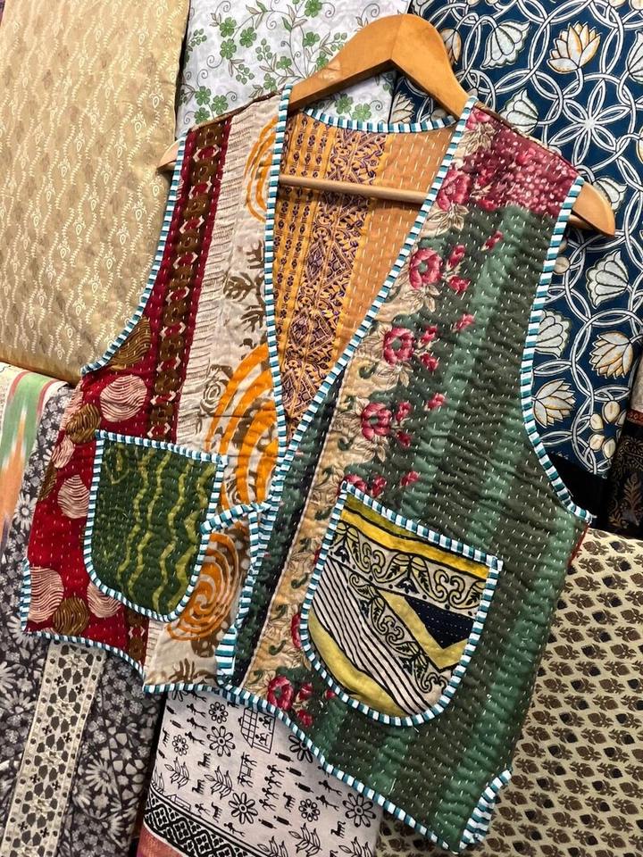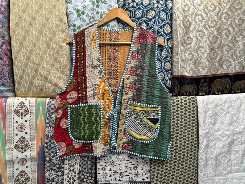 Gilet matelassé en coton pour femmes, fait à la main, col en V, manteau floral, cadeaux de vacances, veste sans manches pour femmes, matelassé durable