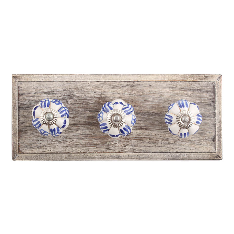 Handmade Wooden Ceramic Blue White Wall Hook Heavy Duty Mounted Coat Hat Bag Towel Hanger Decorative Home Hook