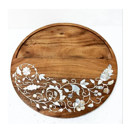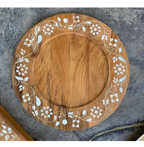 Plateau artisanal en bois et nacre, design exclusif pour accessoires de décoration de table. Plateau en bois et nacre.