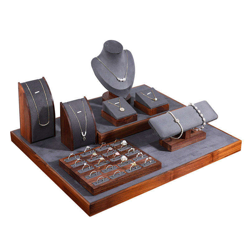 Présentoir rectangulaire en bois fait main pour bijoux de corps et boucles d'oreilles, support personnalisé pour bijoux, ensemble de présentation pour vitrine