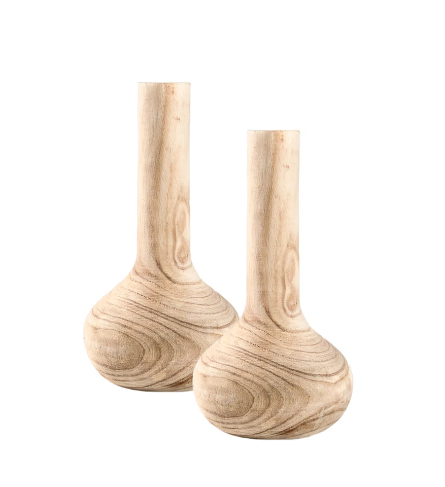 Vase de table en bois fait main avec finition naturelle, accent en bois pour un style intérieur rustique et écologique
