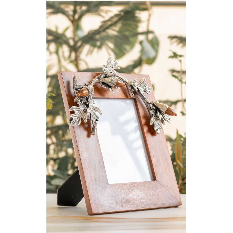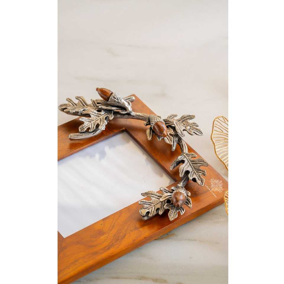 Cadre photo A4 en bois fait main avec motif feuille et gland, cadre photo en bois massif MDF, style simple pour une utilisation décorative DIY