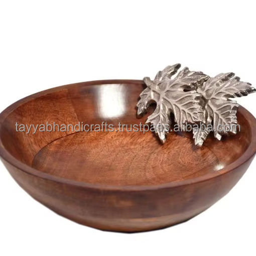 Handmade Wooden Acacia Wood Bowl with Metal Handle for Fruits Salad Soup for Home Hotel Restaurant Use Direct From India