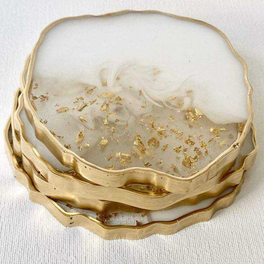 Dessous de verre en résine faits à la main avec pétales incrustés et accents métalliques, tapis époxy parfaits pour la décoration intérieure moderne et les cadeaux.