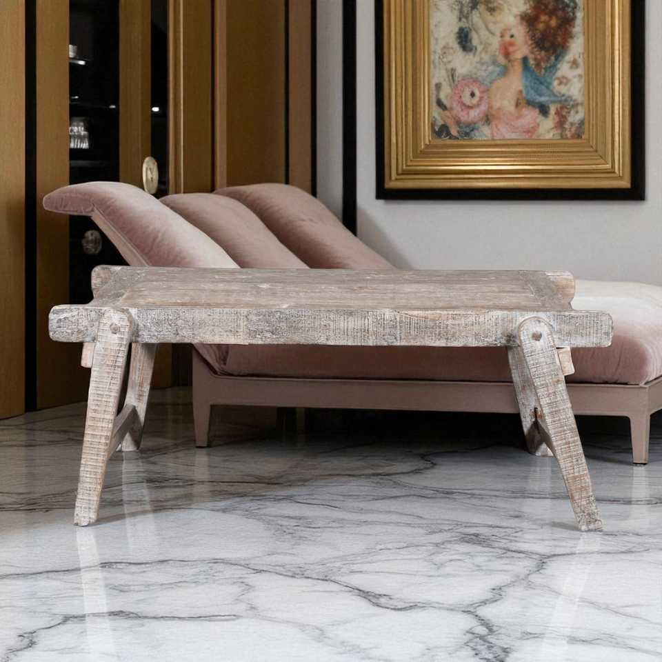 Table basse en bois faite à la main avec un design rustique de style farmhouse, meuble de salon durable avec rangement pour la salle à manger et la maison