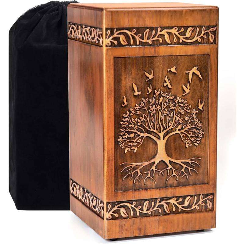 Handmade Wooden Engraved Cremation Urn for Human Ashes Satin Bag & Jars for Adult Male & Female Beautiful Box Included