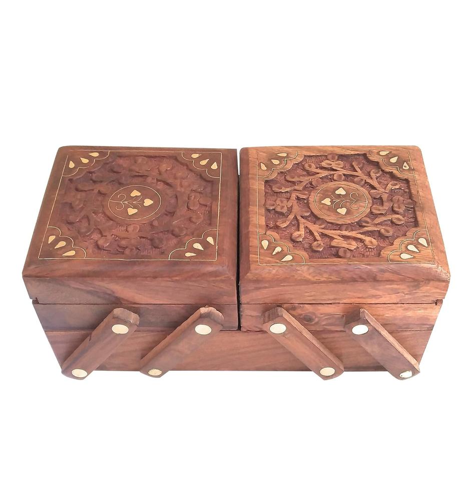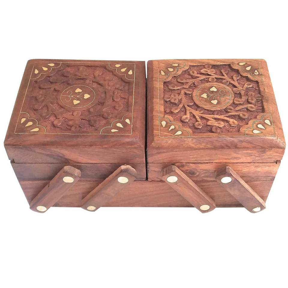 Handmade Luxury Wooden Jewellery Box manufacturer Women Hand Carved Engraved Carvings Organizing Jewels Wine Crafts Tableware