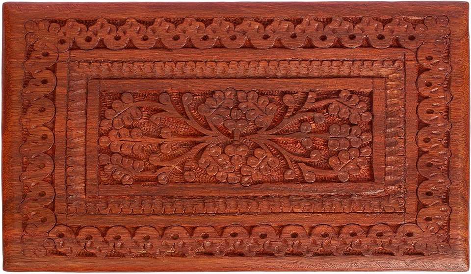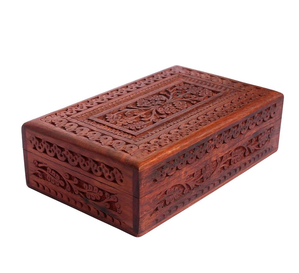Boîte de rangement en bois fait à la main-Organisateur de bijoux-Sculptures à la main florales avec incrustation en laiton-Cadeaux pour femmes,