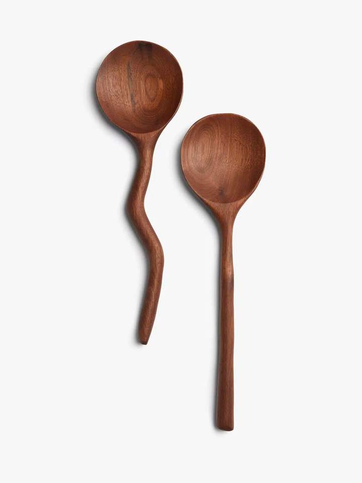 Ensemble de cuillères de cuisine en bois faites à la main avec spatule, louche et cuillère de service pour la cuisine