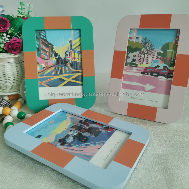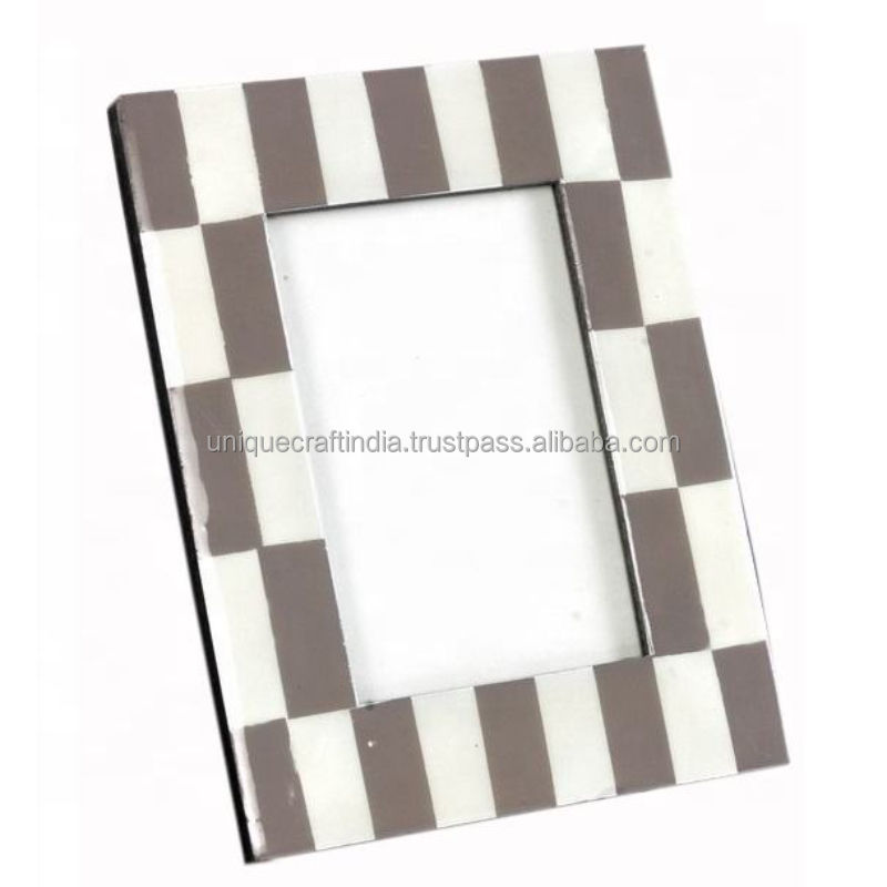 Cadre photo en bois fait main gris et blanc, design minimaliste rayé, décoration de table contemporaine, élégant et moderne pour la maison