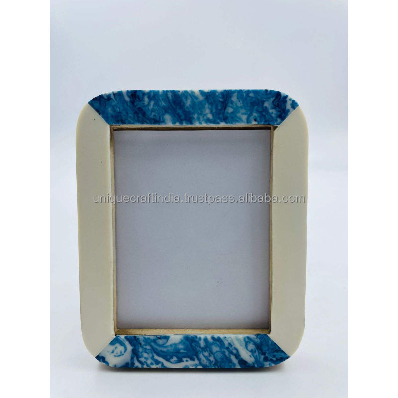 Cadre photo en bois fait main avec coins en résine marbrée bleue, décoration de table écologique | Artisanat en résine de qualité supérieure