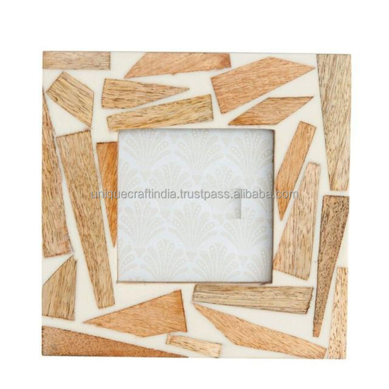 Cadre photo en bois fait main avec incrustation en résine bleue et ivoire à carreaux, cadre décoratif classique