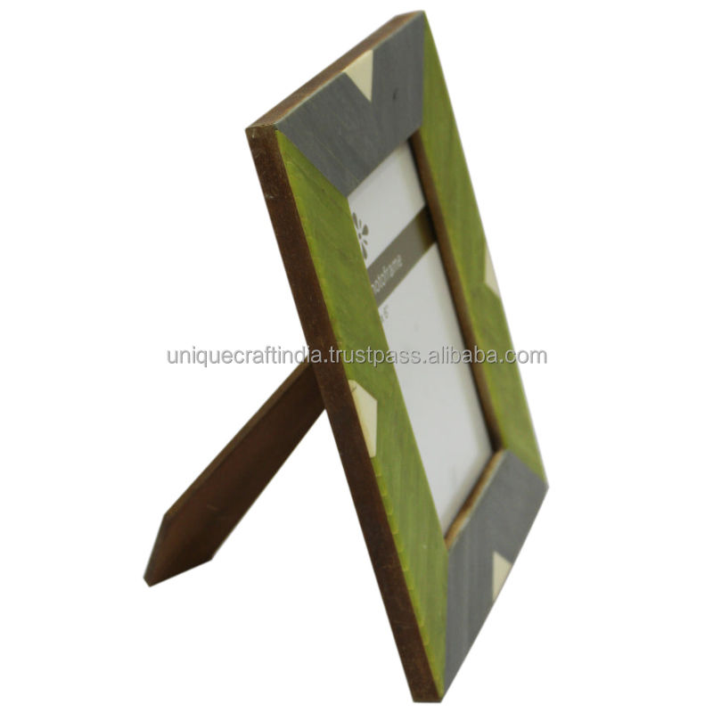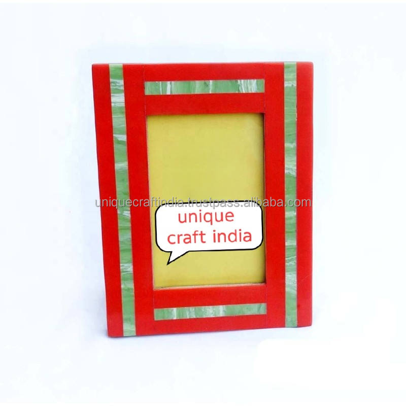Cadre photo en bois fait main avec motif rayé rouge vif, design artisanal moderne, décoration de table