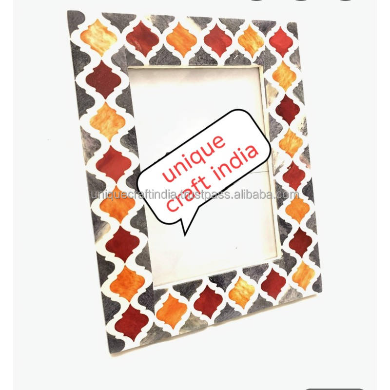 Cadre photo en bois fait main avec incrustation en os d'ivoire motif chevron – Élégant accent décoratif artisanal pour table