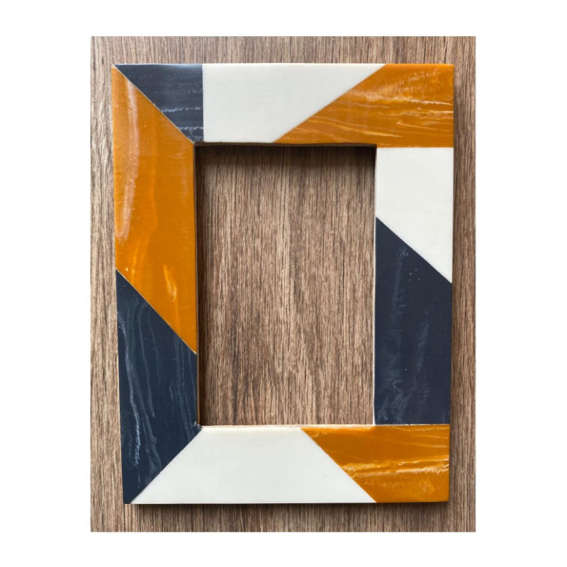 Cadre photo en bois fait main avec incrustation en résine marocaine marron mocha et ivoire, décoration élégante pour la maison