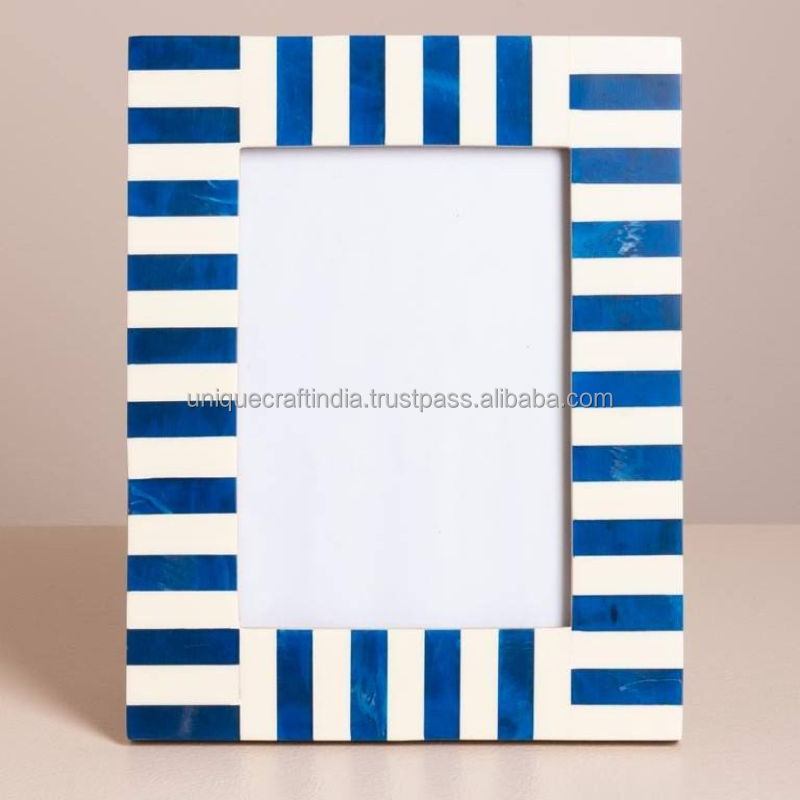 Cadre photo en bois fait main avec incrustation de mosaïque en résine et éclats de bois naturel, accent de décoration rustique et moderne pour la maison