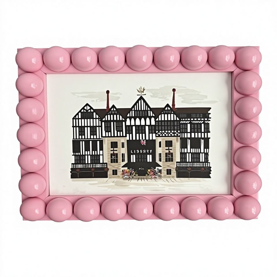 Cadre photo en bois fait main avec bordure en résine perlée rose, décoration vintage chic | Artisanat classique en résine