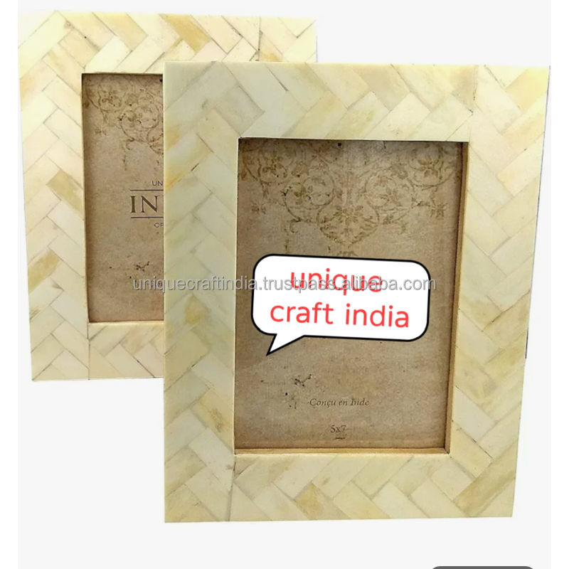 Cadre photo en bois fait main avec incrustation de carreaux de os jaunes, décoration de table contemporaine et lumineuse, décoration artisanale moderne pour la maison