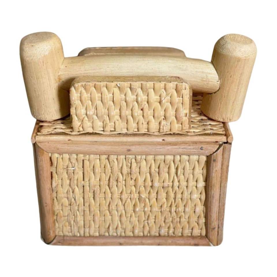 Nom du produit:Téléphone jouet pour enfants en rotin et bois fait main - Jeu d'imitation