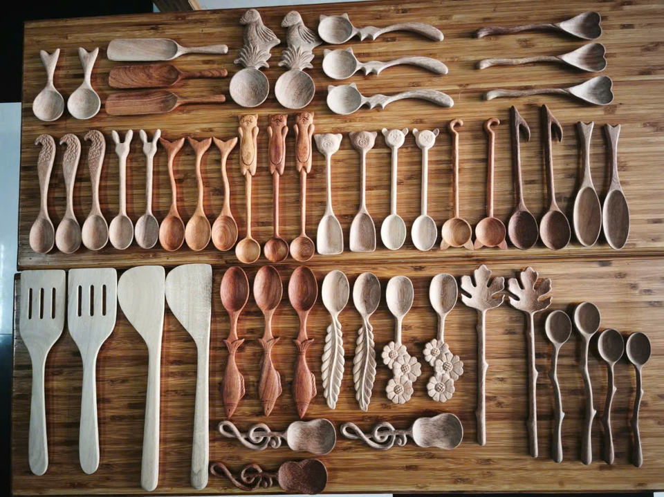 Ensemble de cuillères en bois faites à la main, design unique, approvisionnement en gros, personnalisation OEM
