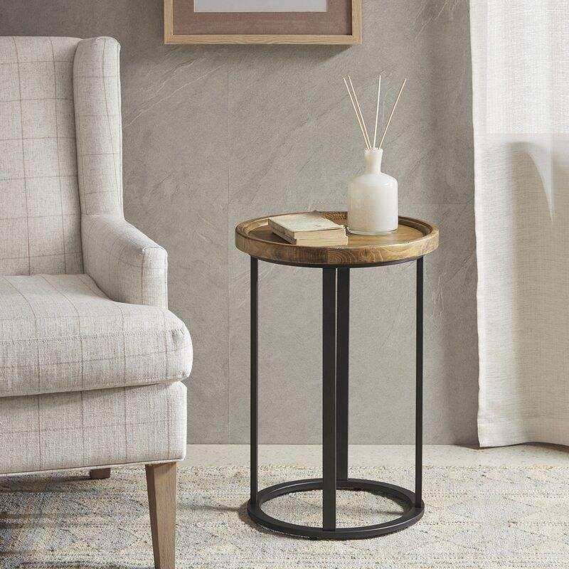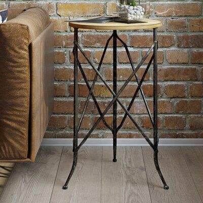 Table d'appoint avec plateau en bois et pieds en fer