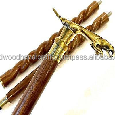 Bâton de marche en bois fait main avec poignée décorative en laiton Cannes de marche en bois de haute qualité