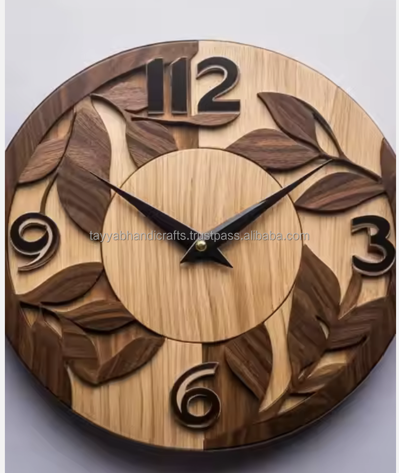 Horloge murale en bois faite à la main, design vintage créatif, horloge en bois à face unique