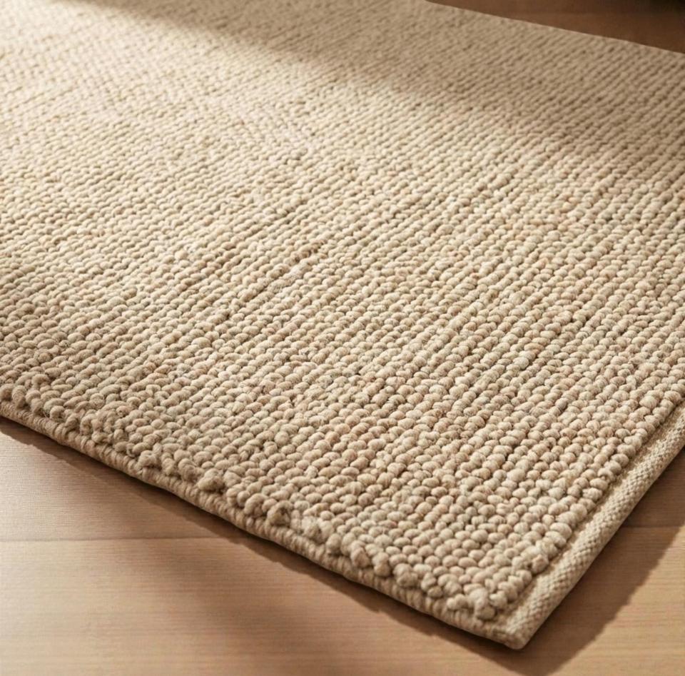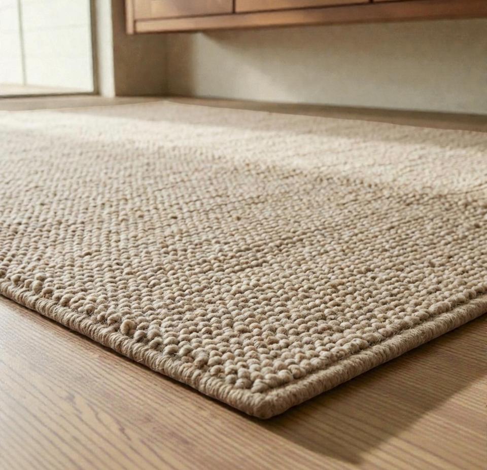 Tapis en laine fait main, beige naturel, tissage plat texturé, tapis moderne pour salon, tapis de sol durable pour la décoration de la maison