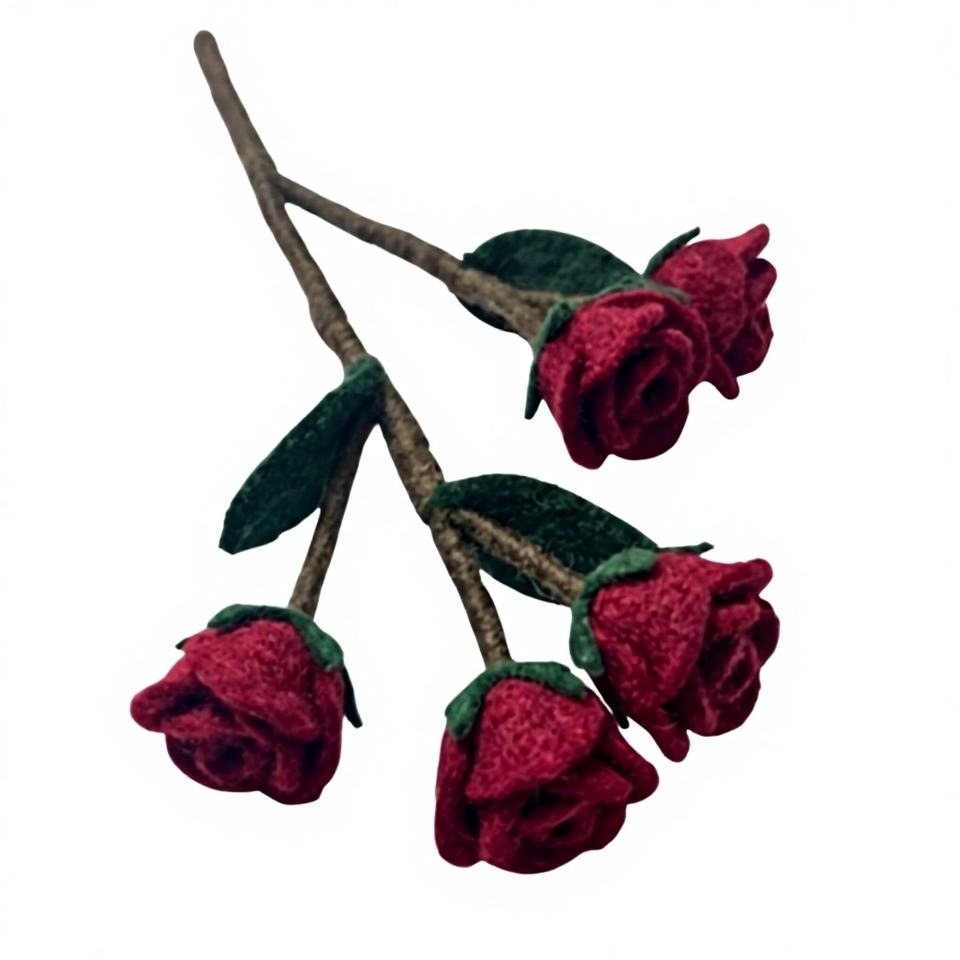 Roses en feutre de laine faites à la main, tiges de fleurs 3D en feutre aiguilleté de qualité supérieure pour la décoration de la maison et de mariages, vente en gros pour les chaînes de magasins