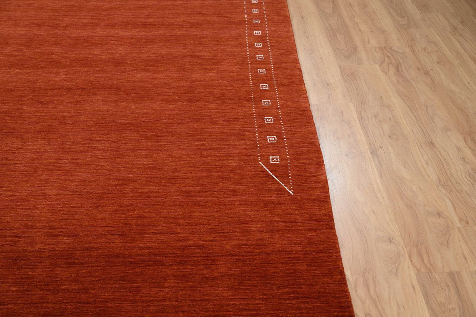 Tapis en laine fait main Gabbeh, bordeaux, orange, terre cuite, style vintage, rouge rouille, grand tapis de sol, décoration d'intérieur confortable