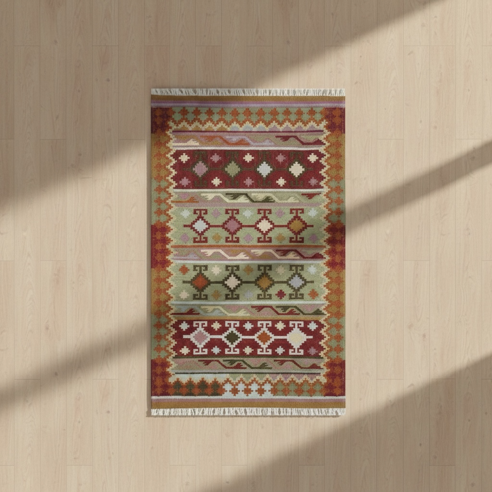 Tapis Kilim en Laine Fait Main, Tissage Plat Abstrait, Écologique, Antidérapant, Tapis Traditionnel pour Salon et Décoration Intérieure
