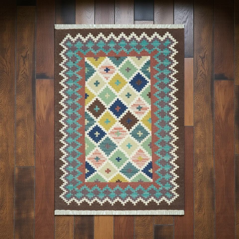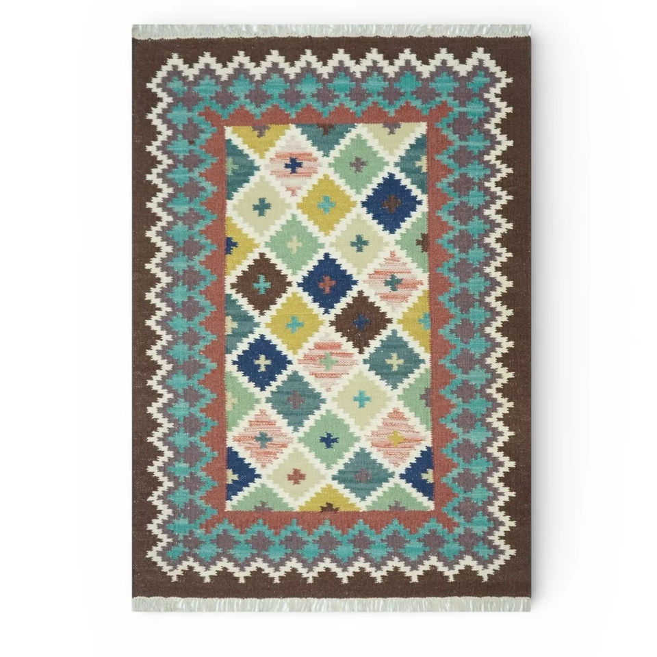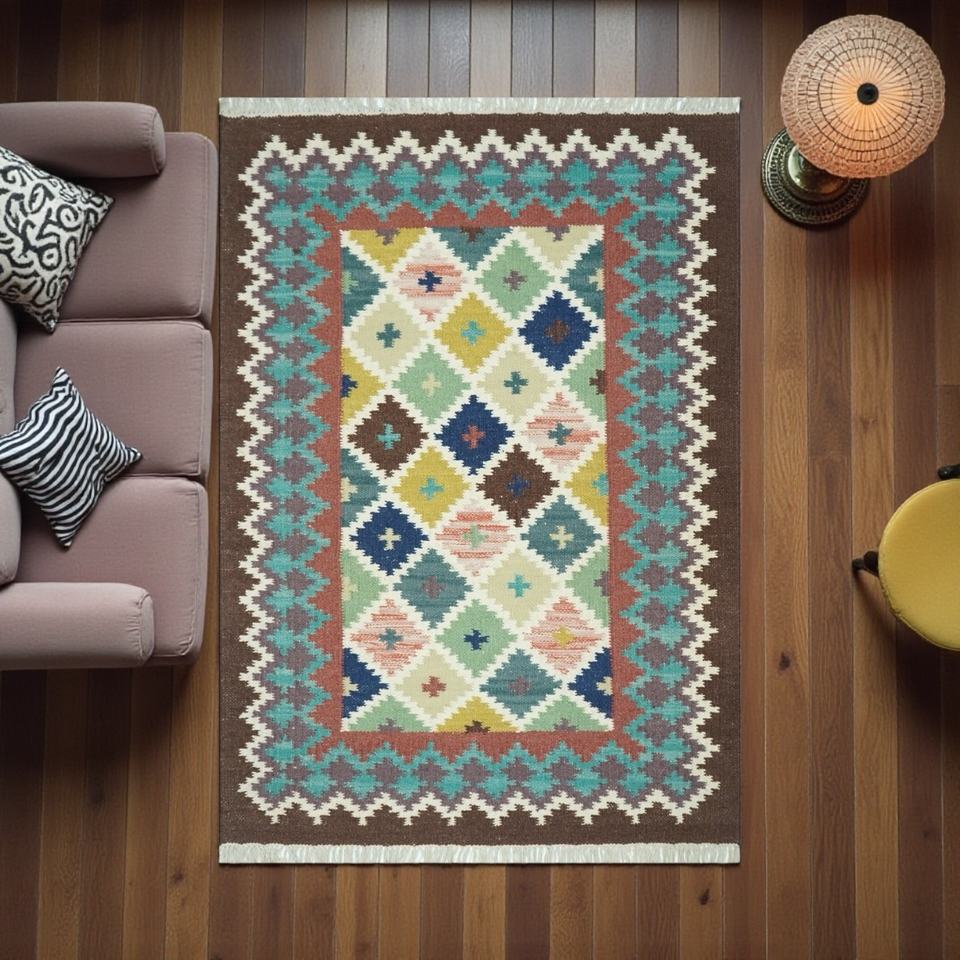 Tapis Kilim en laine/soie fait main et fabriqué à la machine, tapis géométrique moderne et traditionnel à tissage plat pour la maison et le bureau | Écologique