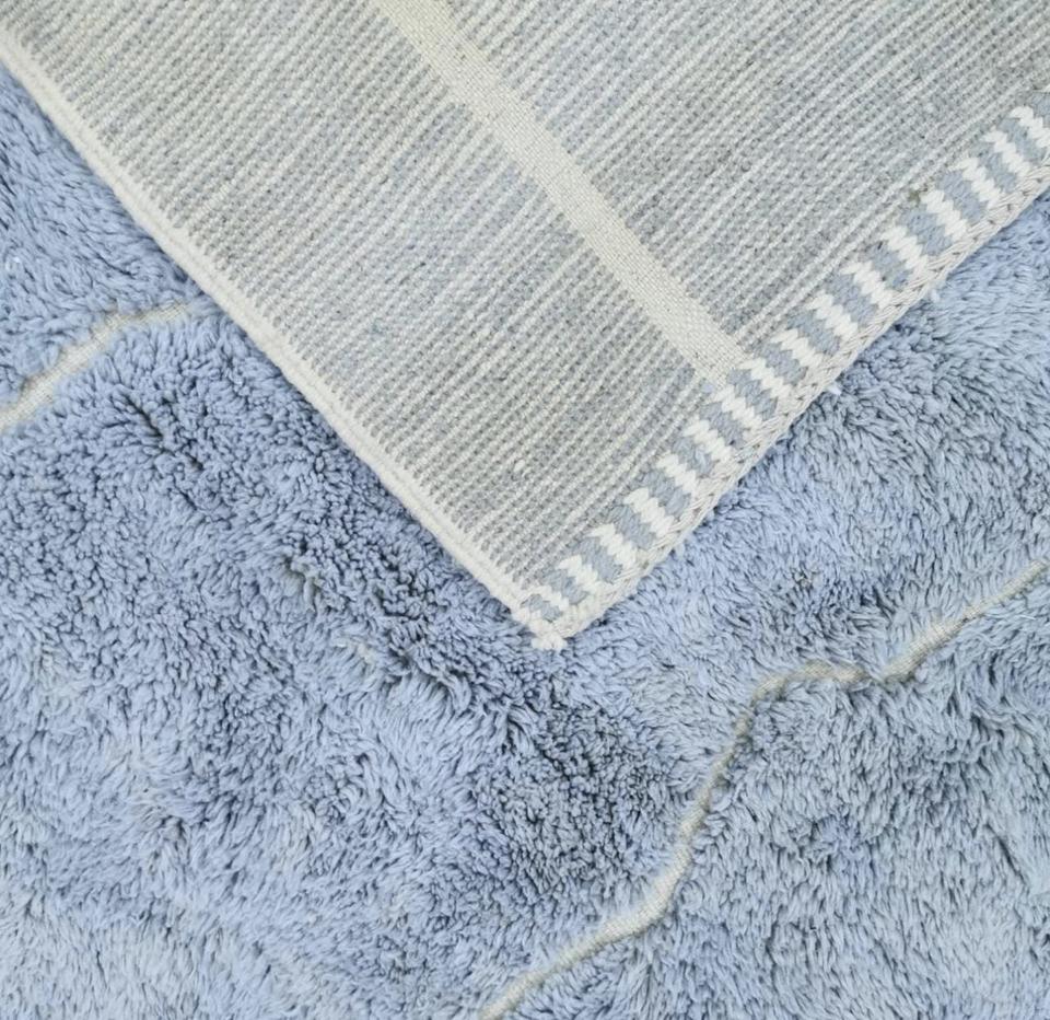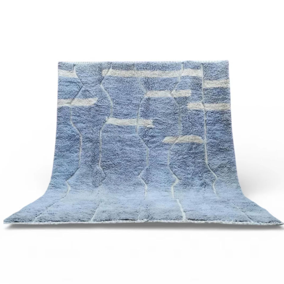 Tapis marocain abstrait en laine fait main, tissé à la main, à poils ras, doux et moelleux, durable, pour salon, chambre et maison