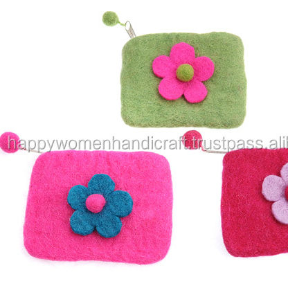 Pochette à monnaie en laine à fermeture éclair unisexe faite à la main sac à main élégant à une fleur pour enfants et dames