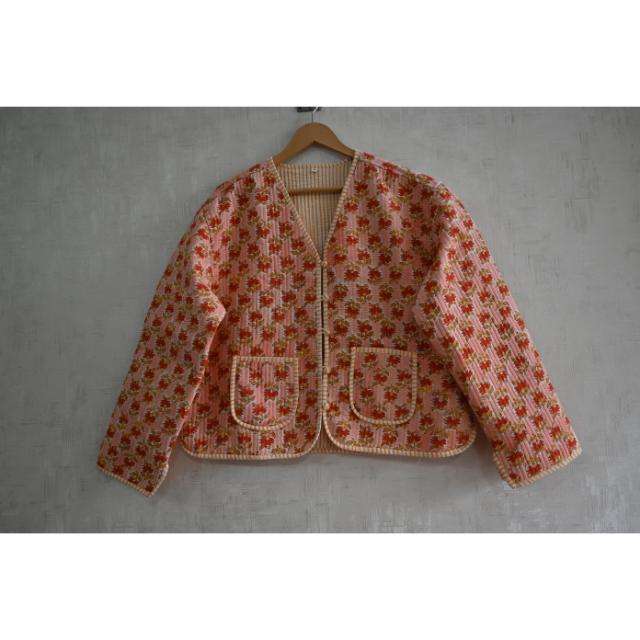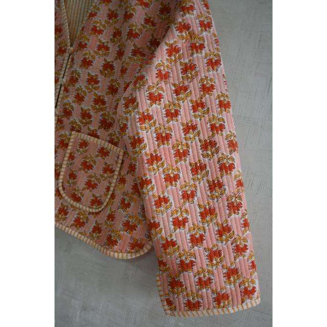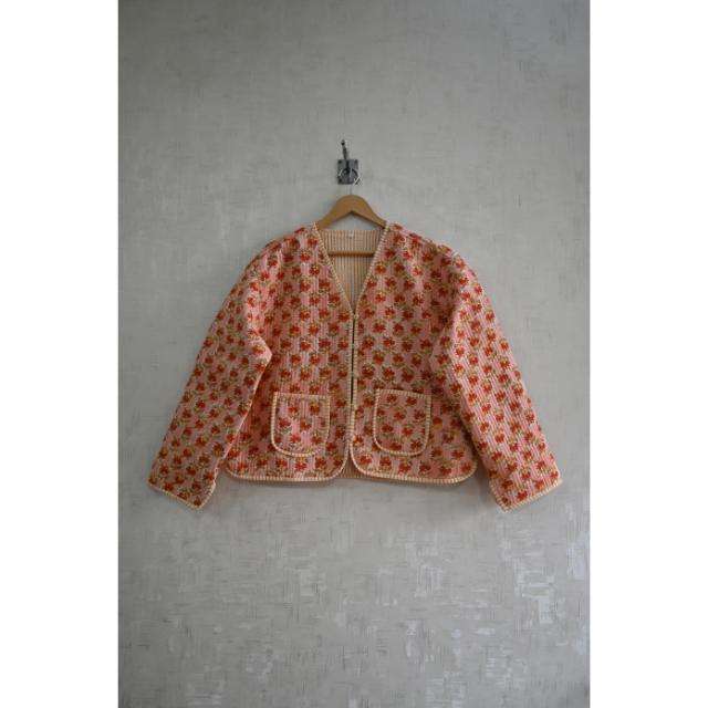 Veste matelassée en coton réversible écologique à imprimé floral tissé à la main, design floral, vêtements d'extérieur d'hiver