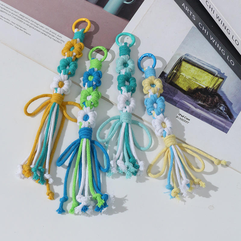 Porte-clés en cuir tissé à la main avec fleur de marguerite, nouveau design créatif, chaîne de téléphone transfrontalière, bracelet de poignet, pendentif pour sac, cadeau