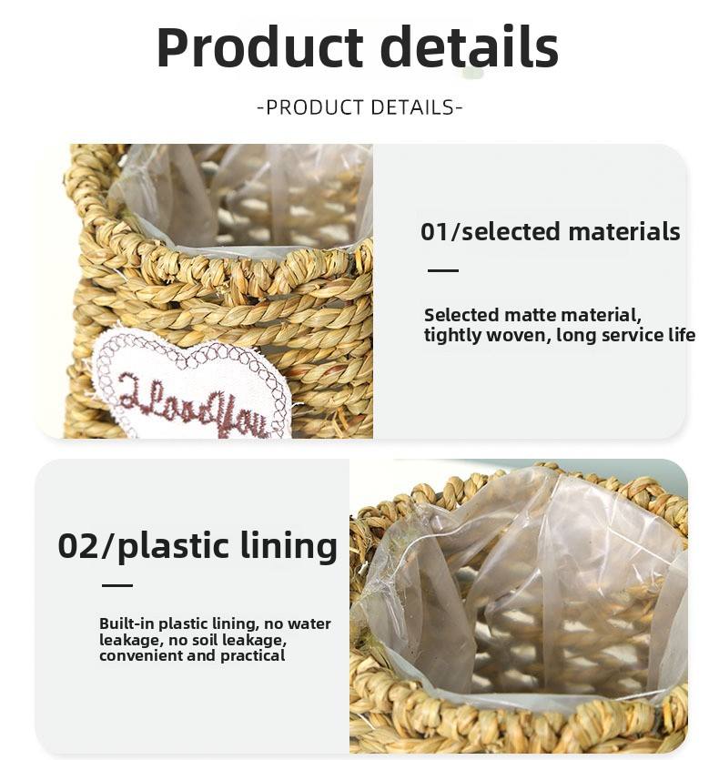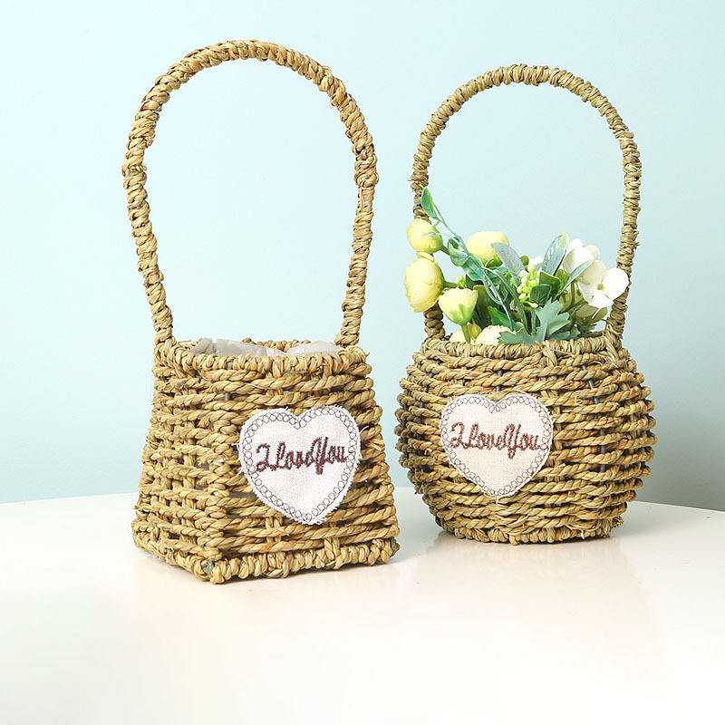 Paniers de fleurs tissés à la main paniers de décoration de cadeaux panier de fruits rond en jonc de mer avec poignée