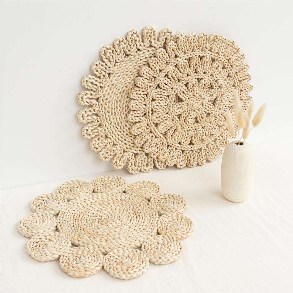 Napperon rond naturel en jacinthe d'eau tissé à la main en paille de jute tissé écologique napperons en paille tressée tapis de Table personnalisé