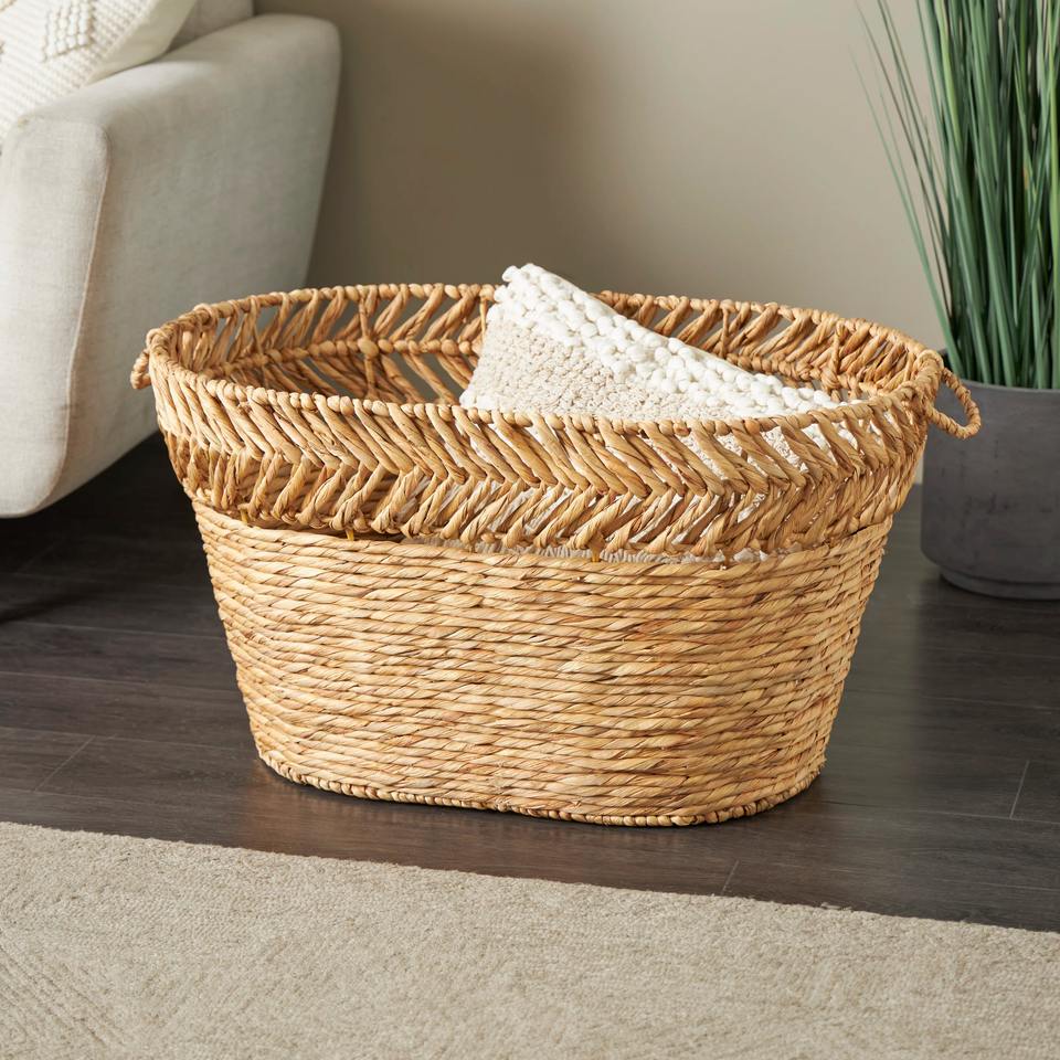 Panier de rangement ovale tissé à la main:Taille : L30 x L20,5 x H16,5 pouces