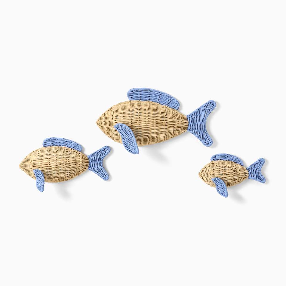 Décoration murale en rotin tressé à la main en forme de poisson - Ensemble de 3 ornements en rotin naturel en forme de poisson pour chambre d'enfant sur le thème de l'océan