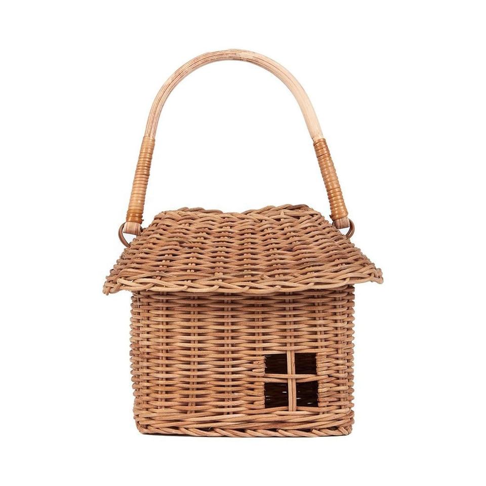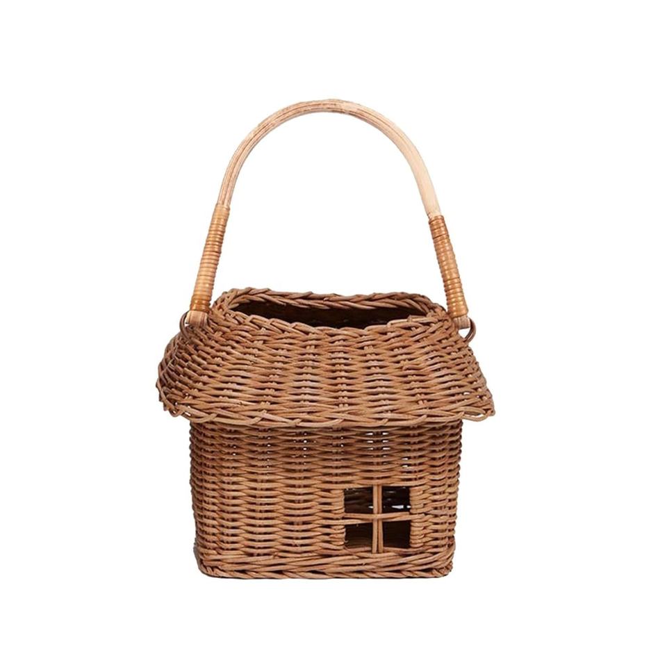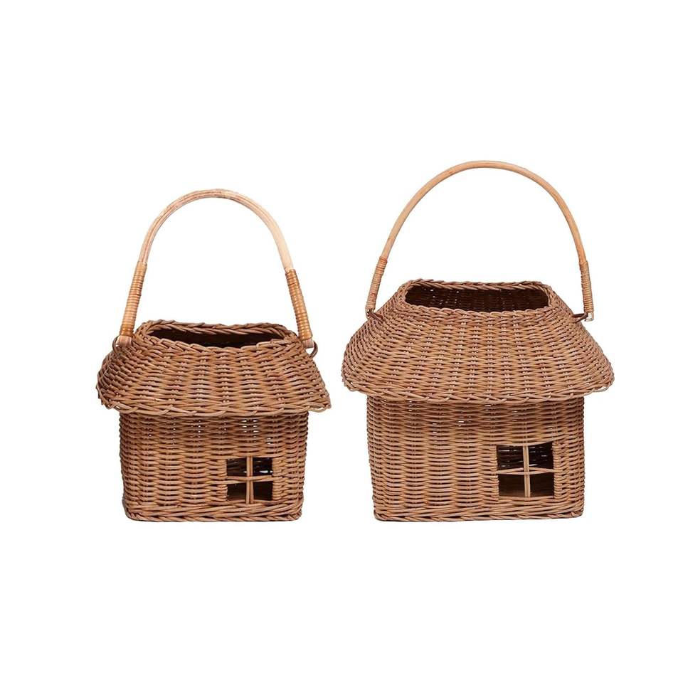 Ensemble de paniers de rangement en rotin tissé à la main en forme de maison | Organisateur de chambre d'enfant décoratif, cadeau souvenir avec poignée