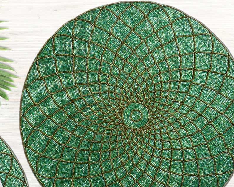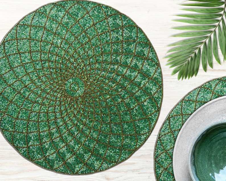 Sets de table perlés avec motif floral personnalisé pour la décoration de table lors de fêtes de Noël, rouge et vert