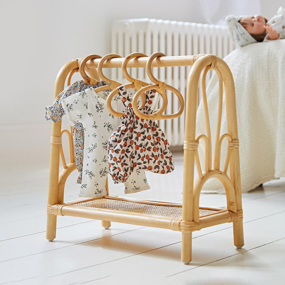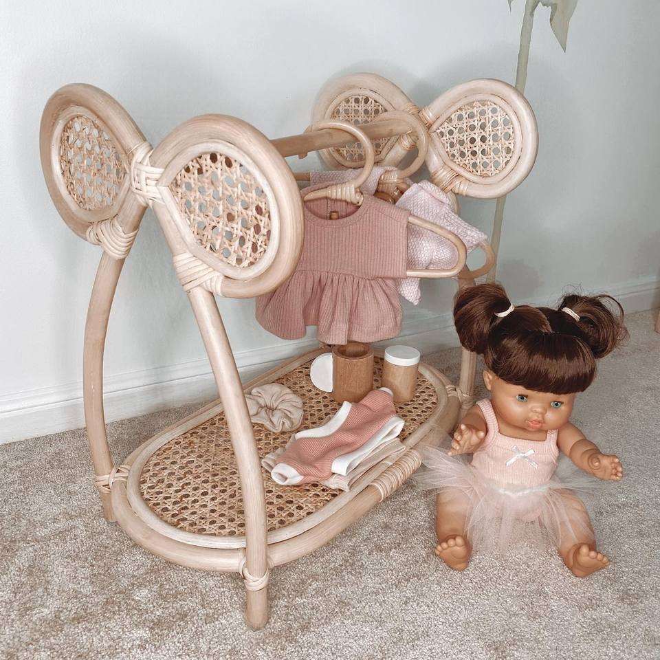 rattan kid toys doll cloth rack