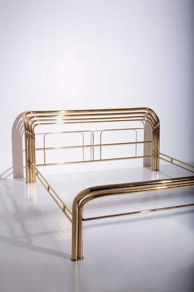 Cadre de lit en laiton fait main avec finition polie, idéal pour les projets hôteliers résidentiels haut de gamme, meubles de chambre à coucher