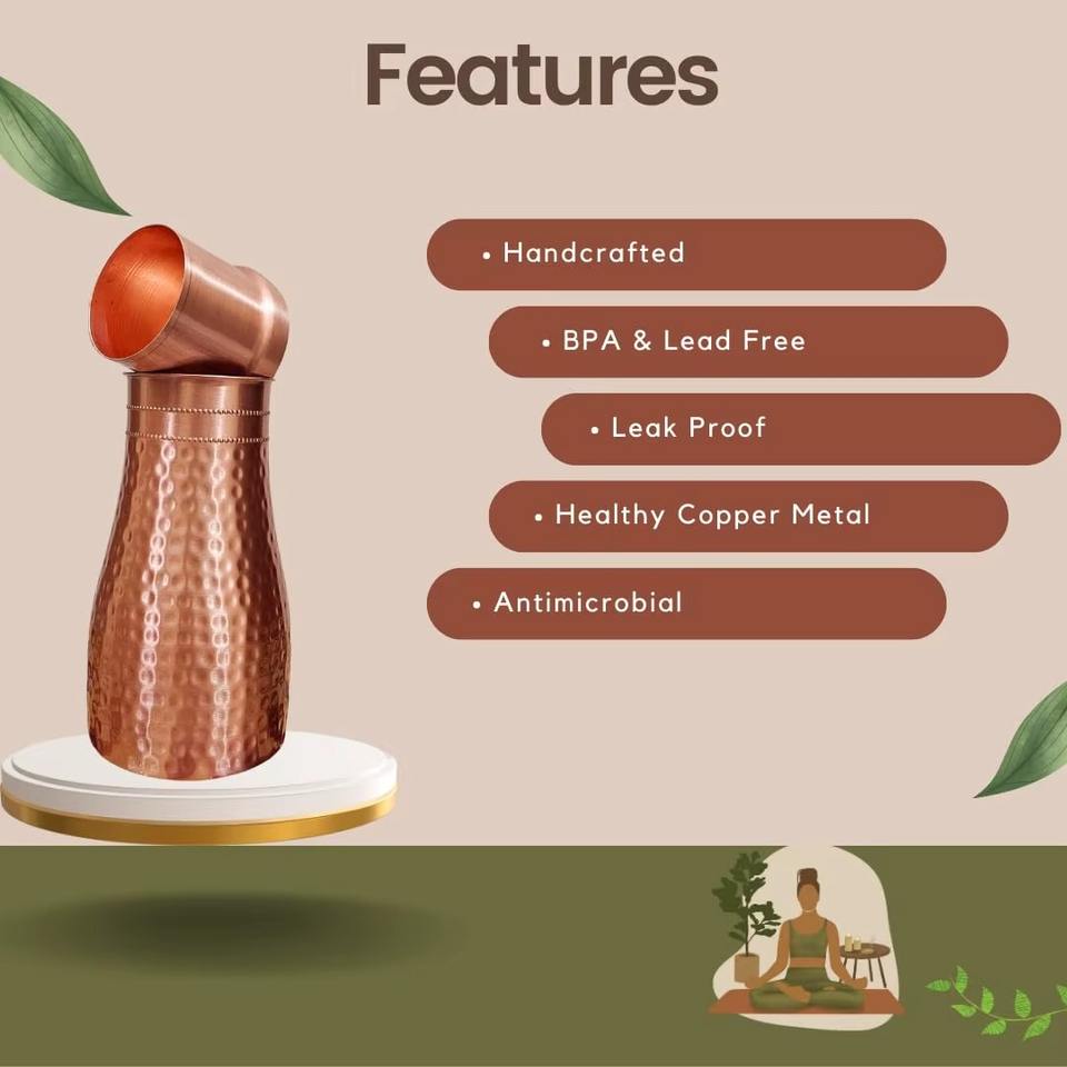 Carafe en cuivre faite à la main avec couvercle, design écologique, grande capacité pour la maison et l'extérieur, refroidissement naturel de l'eau, amélioration du goût